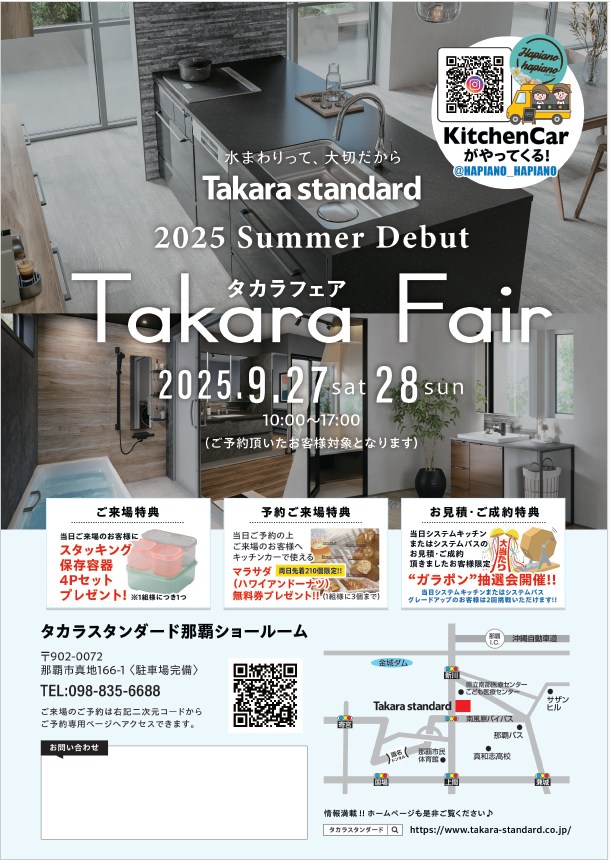 9月最後の週末、土日は那覇市真地にあります、タカラスタンダードへ